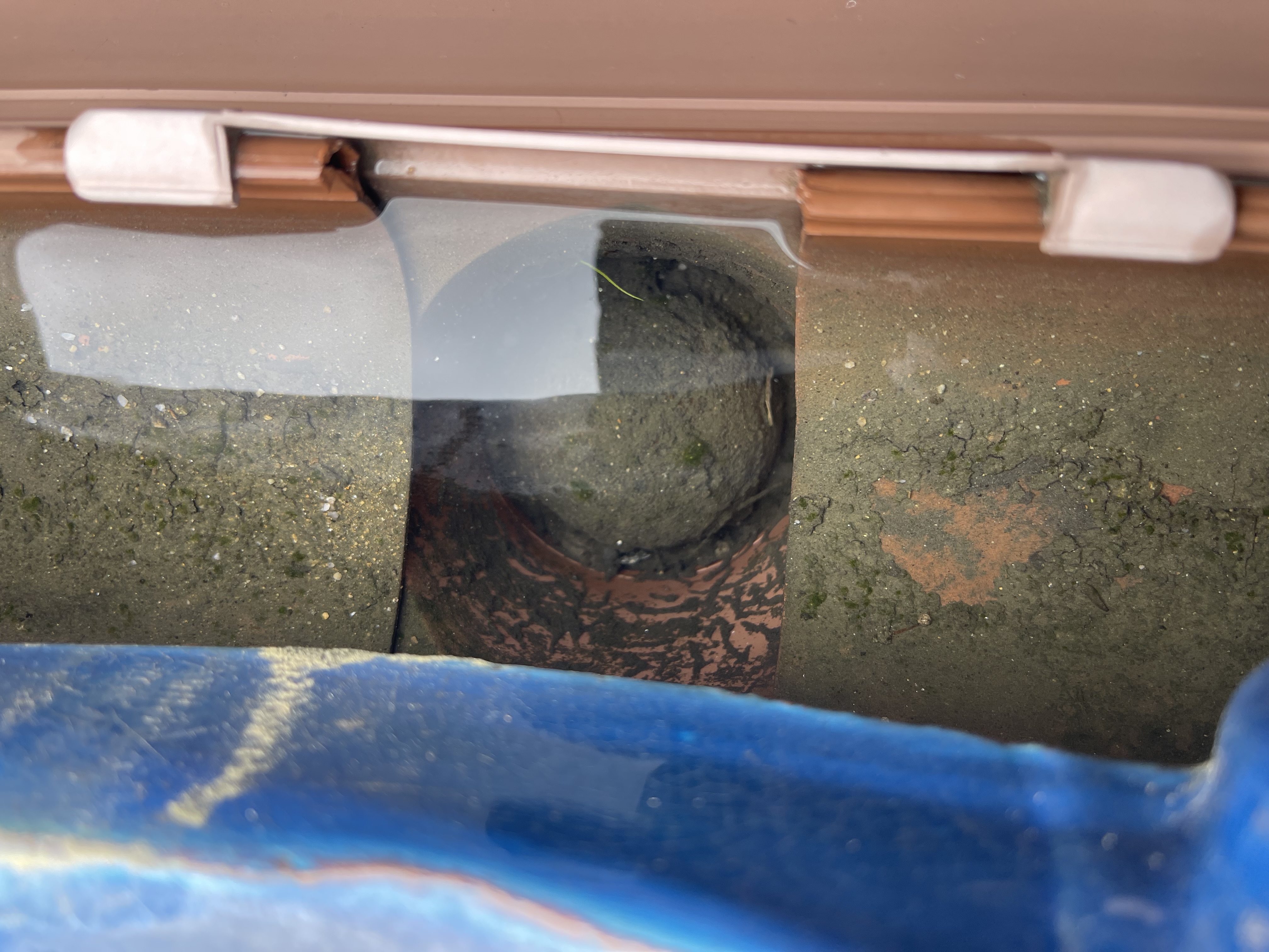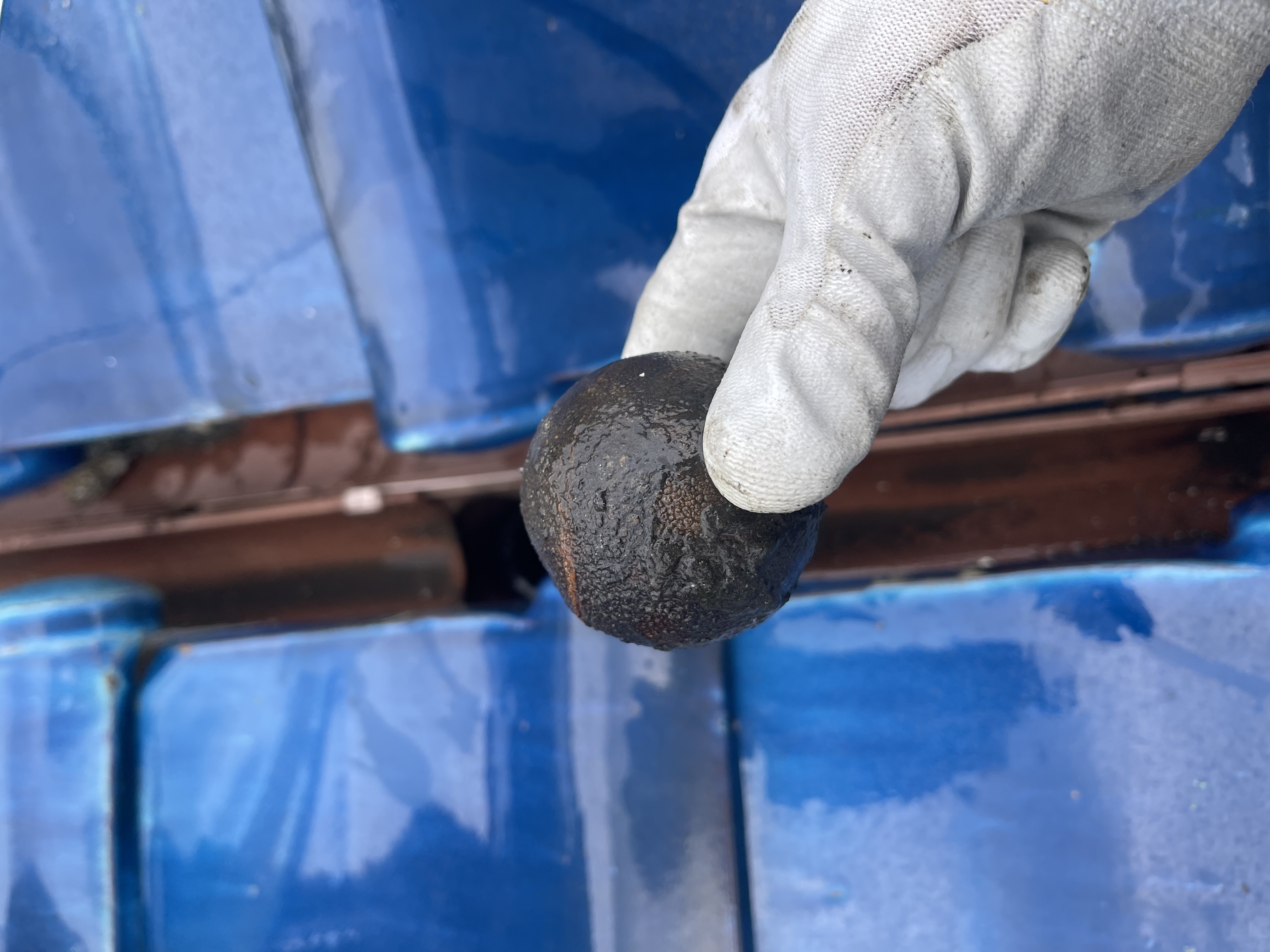 大阪府羽曳野市で雨樋から雨が溢れているとの お問い合わせをいただき、調査させて頂きました。 2階の屋根に付いている軒樋を 拝見した所、集水器の中にボールが入っていました。 お客様に伺った所、 カラスがよく屋根にとまっているらしく、 もしかしたらカラスがボールを運んできたのかも? お客様にとって、雨樋の取り替えなどの 大きな工事にならずにすんで良かったです。ならなくて一安心でした。